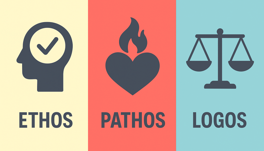 Ethos och pathos öppnar dörren. Logos är det som får publiken att faktiskt acceptera budskapet och kanske agera. Det handlar om att du har strukturerat ditt resonemang, bygger dina argument och visar bevis – så att det inte bara blir “bra känsla”, utan också “det här är rimligt”.
